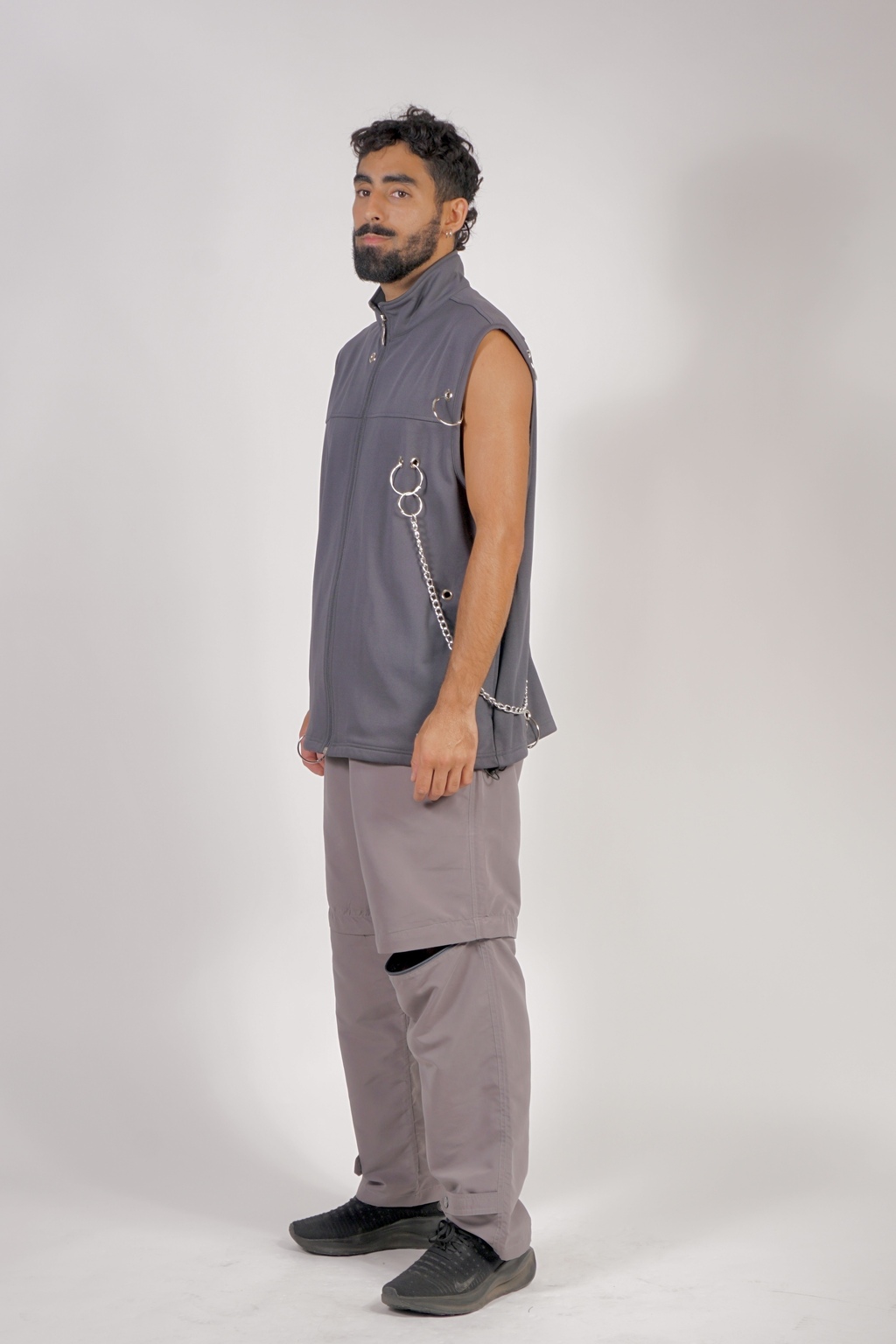 calça cargo em tactel com design vintage e detalhe de zíper na altura do joelho.
